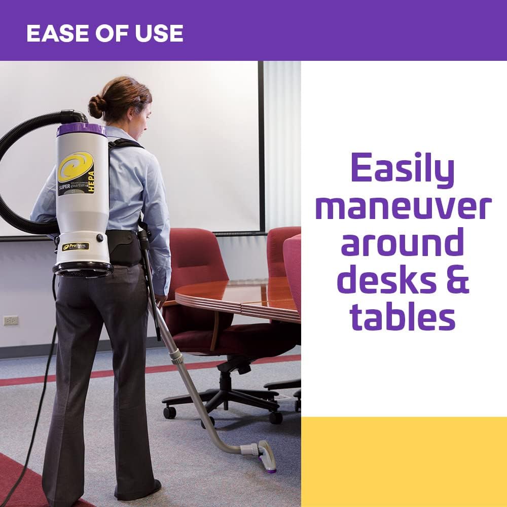Ideal backpack vac for the hospitality industry including hotels, resorts and meeting halls and extra-long 50-foot power cord cleans large areas without having to unplug